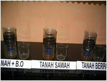 a. Sediakan 3 macam tanah yaitu tanah sawah, tanah berpasir dan tanah yang mengandung banyak bahan organik masing masing 500 gram, dan sediakan pula 3 gelas kecil air @ 150 cc.